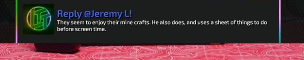 Reply @Jeremy L! They seem to enjoy their mine crafts. He also does, and uses a sheet of things to do before screen time.