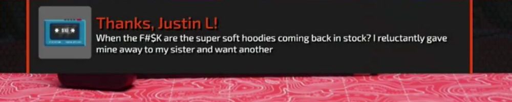 Thanks, Justin L! When the F#SK are the super soft hoodies coming back in stock? I reluctantly gave mine away to my sister and want another