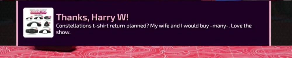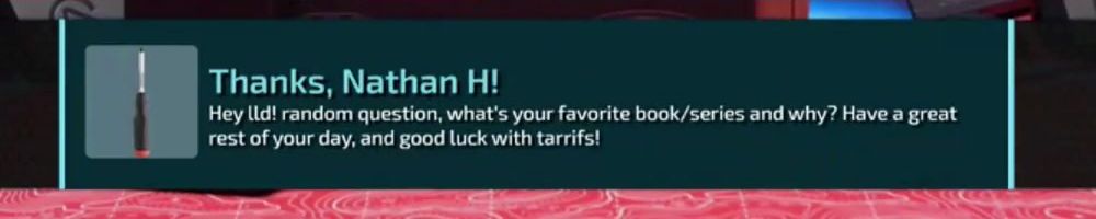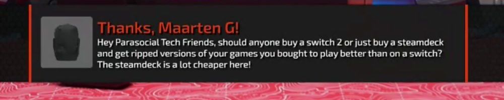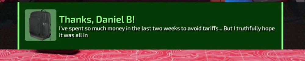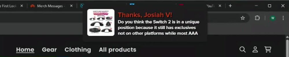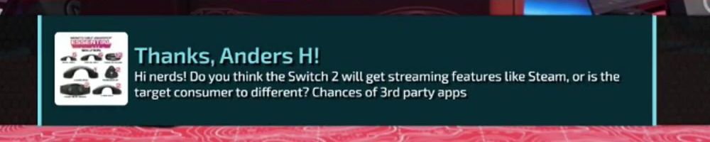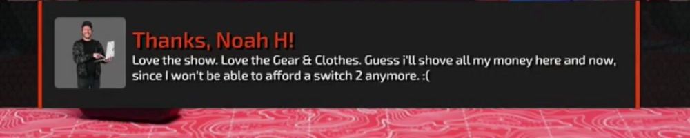 Thanks, Noah H! Love the show. Love the Gear & Clothes. Guess i'll shove all my money here and now, since I won't be able to afford a switch 2 anymore. :(