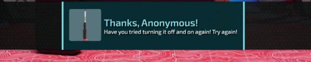 Thanks, Anonymous! Have you tried turning it off and on again! Try again!