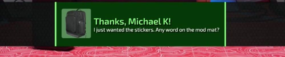 Thanks, Michael K! I just wanted the stickers. Any word on the mod mat?