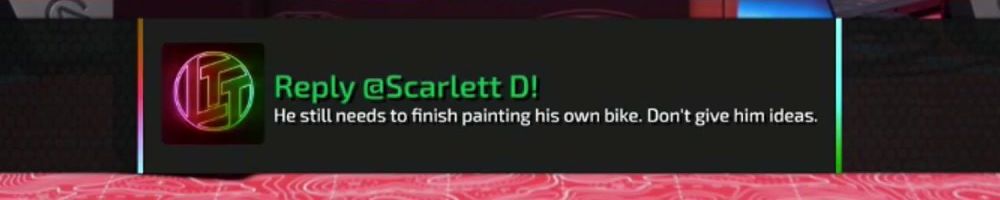 Reply @Scarlett D! He still needs to finish painting his own bike. Don't give him ideas.