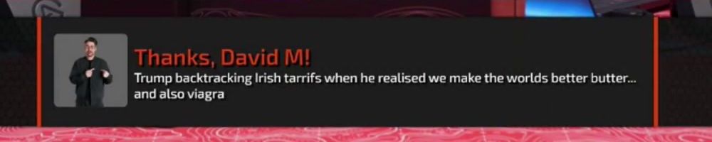Thanks, David M! Trump backtracking Irish tarrifs when he realised we make the worlds better butter... and also viagra