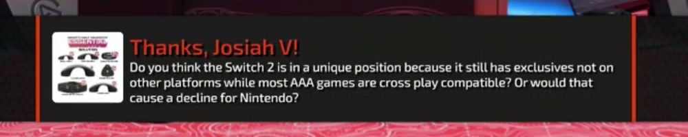 Thanks, Josiah V! Do you think the Switch 2 is in a unique position because it still has exclusives not on other platforms while most AAA