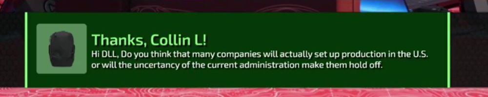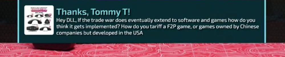 Thanks, Jeffrey N! Any idea how RMAs will work with the tariffs? (Also, Hi Dan!!!)