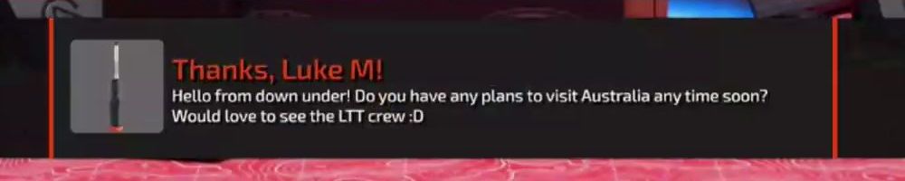 Thanks, Luke M! Hello from down under! Do you have any plans to visit Australia any time soon? Would love to see the LTT crew :D