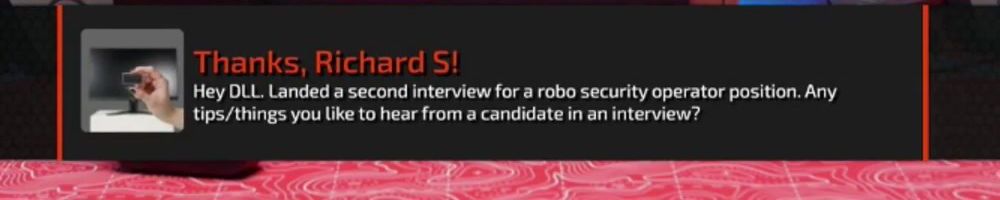 Thanks, Richard S! Hey DLL. Landed a second interview for a robo security operator position. Any tips/things you like to hear from a candidate in an interview?