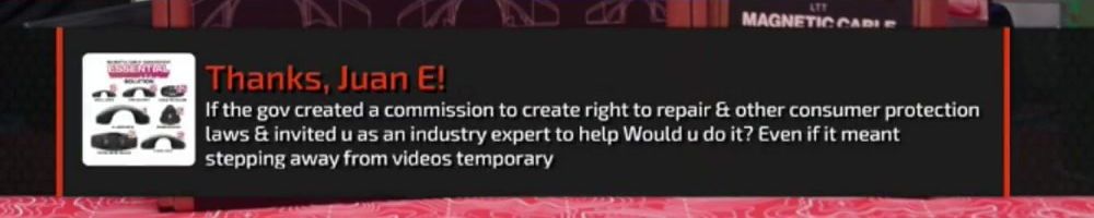 If the gov created a commission to create right to repair & other consumer protection laws & invited u as an industry expert to help Would u do it? Even if it meant stepping away from videos temporary