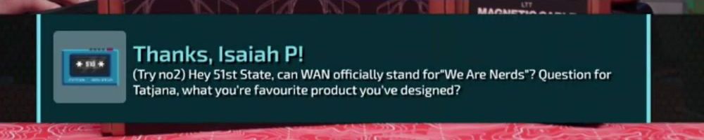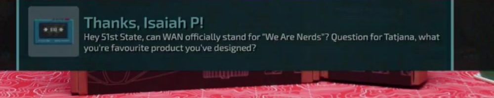 (Try no2) Hey 51st State, can WAN officially stand for "We Are Nerds"? Question for Tatjana, what you're favourite product you've designed?