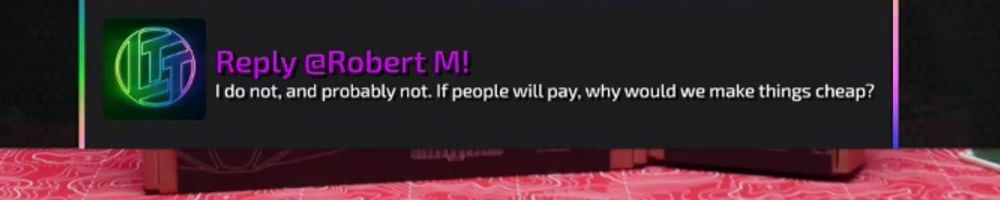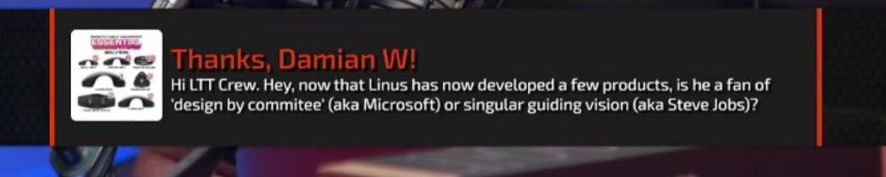 Hi LTT Crew. Hey, now that Linus has now developed a few products, is he a fan of