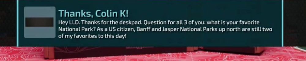 Hey LLD. Thanks for the deskpad. Question for all 3 of you: what is your favorite National Park? As a US citizen, Banff and Jasper National Parks up north are still two of my favorites to this day!