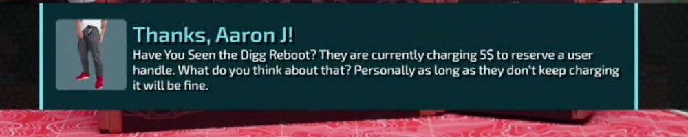 Have You Seen the Digg Reboot? They are currently charging 5$ to reserve a user handle. What do you think about that? Personally as long as they don't keep charging it will be fine.