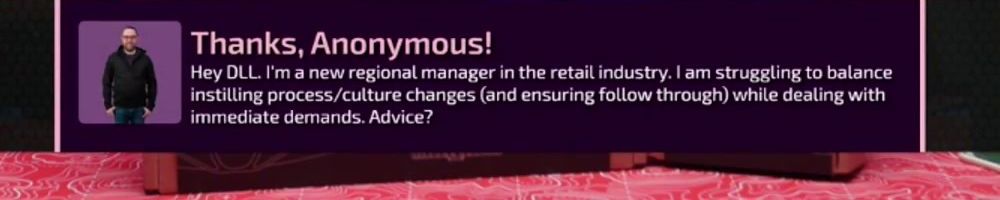 Hey DLL. I'm a new regional manager in the retail industry. I am struggling to balance instilling process/culture changes (and ensuring follow through) while dealing with immediate demands. Advice?