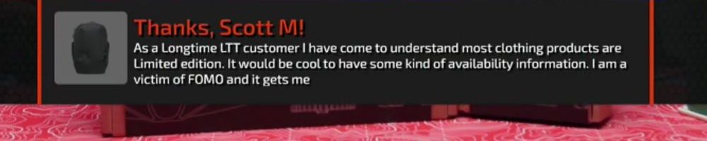 As a Longtime LTT customer I have come to understand most clothing products are Limited edition. It would be cool to have some kind of availability information. I am a victim of FOMO and it gets me