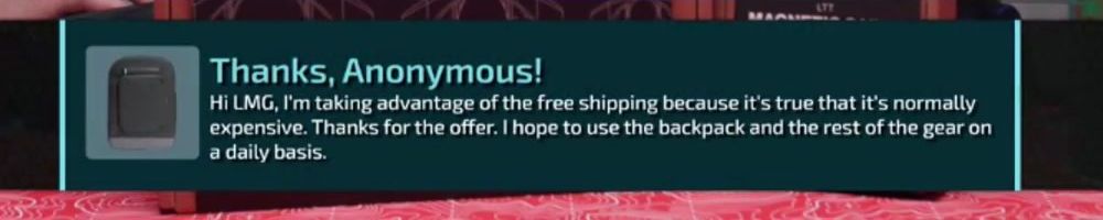 Hi LMG, I'm taking advantage of the free shipping because it's true that it's normally expensive. Thanks for the offer. I hope to use the backpack and the rest of the gear on a daily basis.