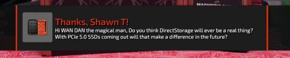 Hi WAN DAN the magical man, Do you think DirectStorage will ever be a real thing?