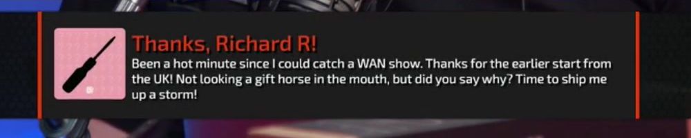 Hint: Use CTRL + F to search messages in this show, or use Whenplane's WAN Show Search tool to search for messages in all shows.