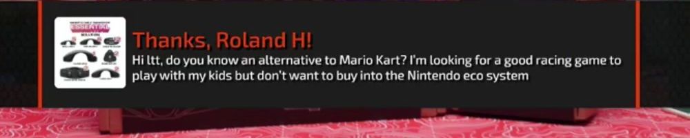 Hi ltt, do you know an alternative to Mario Kart? I'm looking for a good racing game to play with my kids but don't want to buy into the Nintendo eco system