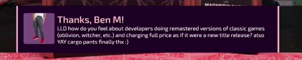 LLD how do you feel about developers doing remastered versions of classic games (oblivion, witcher, etc.) and charging full price as if it were a new title release? also YAY cargo pants finally thx :)