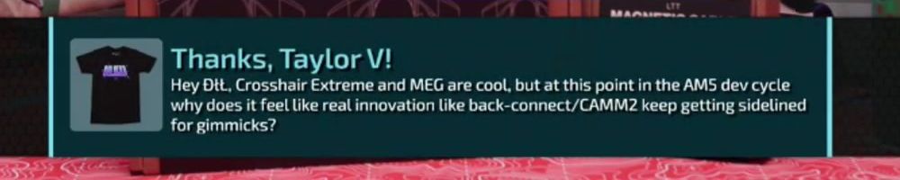 Hey Dtt, Crosshair Extreme and MEG are cool, but at this point in the AM5 dev cycle why does it feel like real innovation like back-connect/CAMM2 keep getting sidelined for gimmicks?