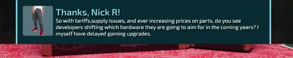 So with tariffs, supply issues, and ever increasing prices on parts, do you see developers shifting which hardware they are going to aim for in the coming years? I myself have delayed gaming upgrades.