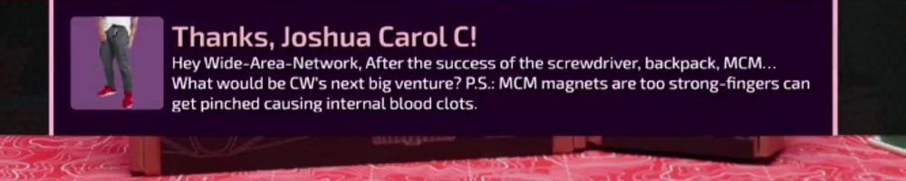 What would be CW's next big venture? P.S.: MCM magnets are too strong-fingers can
