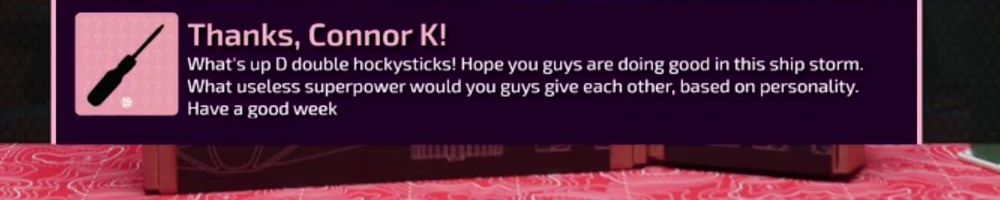 What's up D double hockysticks! Hope you guys are doing good in this ship storm.