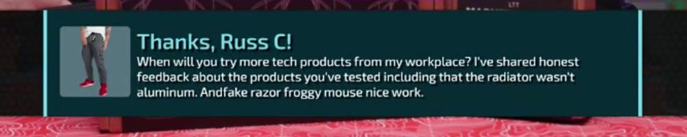 When will you try more tech products from my workplace? I've shared honest feedback about the products you've tested including that the radiator wasn't aluminum. Andfake razor froggy mouse nice work.