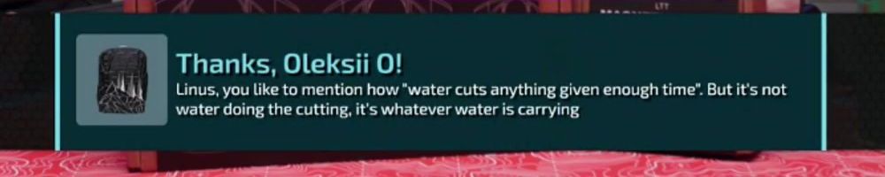Linus, you like to mention how "water cuts anything given enough time". But it's not