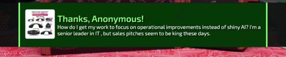 How do I get my work to focus on operational improvements instead of shiny AI? I'm a senior leader in IT, but sales pitches seem to be king these days.