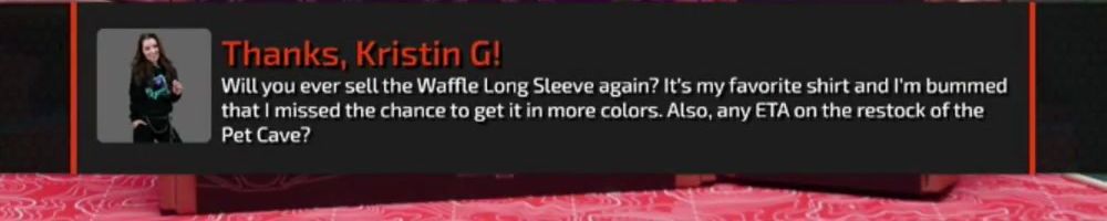 Will you ever sell the Waffle Long Sleeve again? It's my favorite shirt and I'm bummed that I missed the chance to get it in more colors. Also, any ETA on the restock of the Pet Cave?