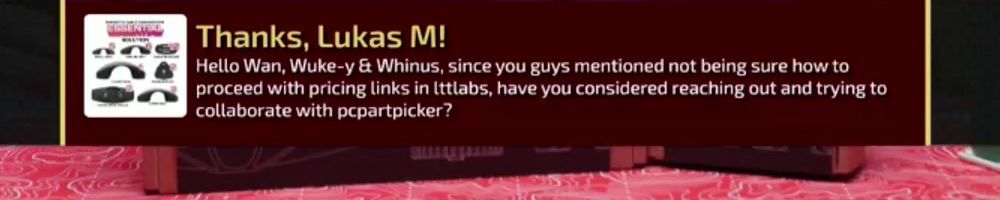 Hello Wan, Wuke-y & Whinus, since you guys mentioned not being sure how to proceed with pricing links in lttlabs, have you considered reaching out and trying to collaborate with pcpartpicker?