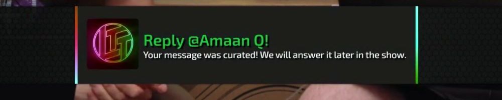 Reply @Amaan Q! Your message was curated! We will answer it later in the show.
