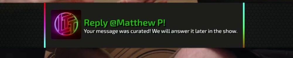 Reply @Matthew P! Your message was curated! We will answer it later in the show.