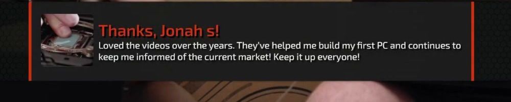 Thanks, Jonah s! Loved the videos over the years. They've helped me build my first PC and continues to keep me informed of the current market! Keep it up everyone!