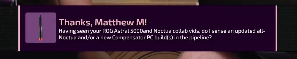 Thanks, Matthew M! Having seen your ROG Astral 5090and Noctua collab vids, do | sense an updated all- Noctua and/or a new Compensator PC build(s) in the pipeline?