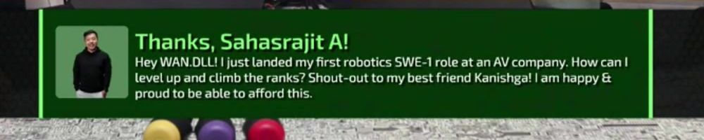 Hey WAN.DLL! I just landed my first robotics SWE-1 role at an AV company. How can I level up and climb the ranks? Shout-out to my best friend Kanishga! I am happy & proud to be able to afford this.