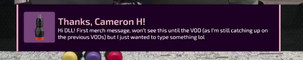 Hi DLL! First merch message, won't see this until the VOD (as I'm still catching up on the previous VODs) but I just wanted to type something lol