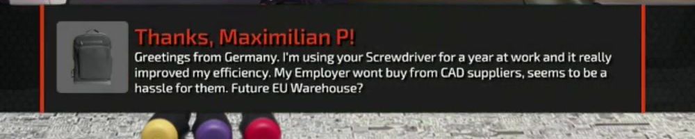 Greetings from Germany. I'm using your Screwdriver for a year at work and it really improved my efficiency. My Employer wont buy from CAD suppliers, seems to be a hassle for them. Future EU Warehouse?