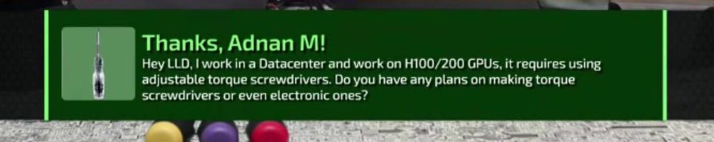Hey LLD, I work in a Datacenter and work on H100/200 GPUs, it requires using adjustable torque screwdrivers. Do you have any plans on making torque screwdrivers or even electronic ones?
