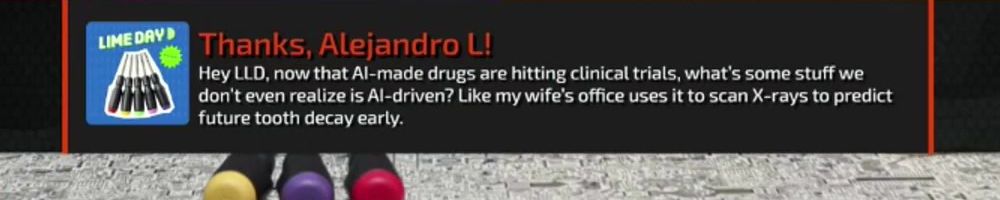 Hey LLD, now that AI-made drugs are hitting clinical trials, what's some stuff we don't even realize is AI-driven? Like my wife's office uses it to scan X-rays to predict future tooth decay early.