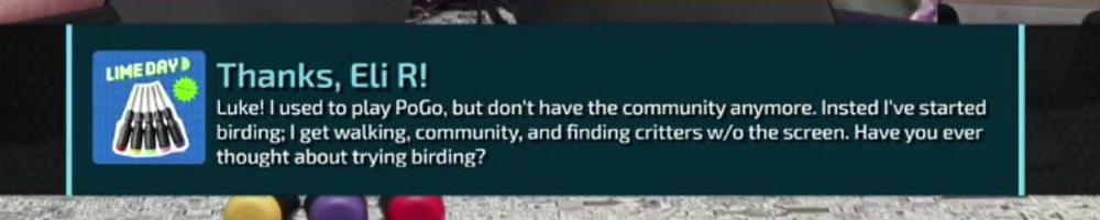 Luke! I used to play PoGo, but don't have the community anymore. Insted I've started birding; I get walking, community, and finding critters w/o the screen. Have you ever thought about trying birding?