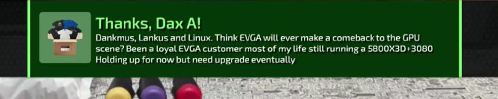 Dankmus, Lankus and Linux. Think EVGA will ever make a comeback to the GPU scene? Been a loyal EVGA customer most of my life still running a S800X3D+3080 Holding up for now but need upgrade eventually
