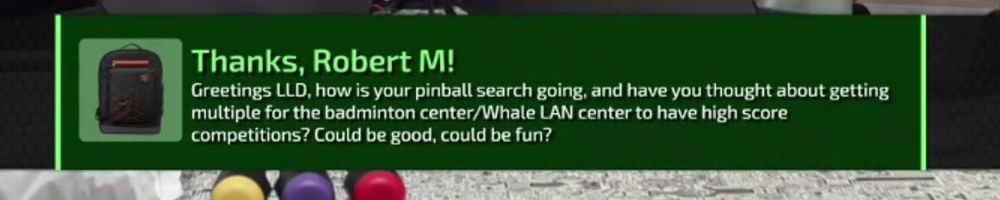 Greetings LLD, how is your pinball search going, and have you thought about getting multiple for the badminton center/Whale LAN center to have high score competitions? Could be good, could be fun?