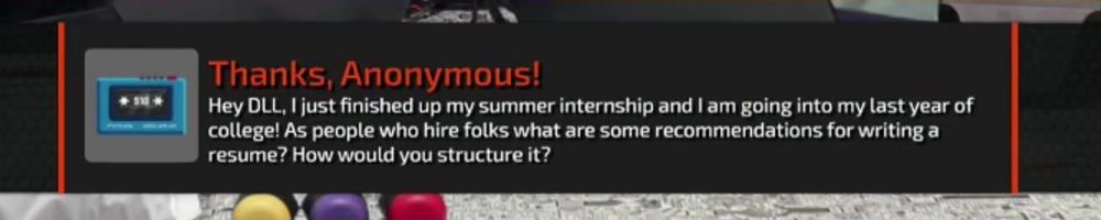 Hey DLL, I just finished up my summer internship and I am going into my last year of college! As people who hire folks what are some recommendations for writing a resume? How would you structure it?