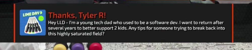 Hey LLD - I'm a young tech dad who used to be a software dev. I want to return after several years to better support 2 kids. Any tips for someone trying to break back into this highly saturated field?
