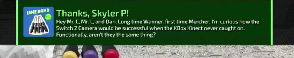 Hey Mr. L, Mr. L, and Dan. Long time Wanner, first time Mercher. I'm curious how the Switch 2 Camera would be successful when the XBox Kinect never caught on. Functionally, aren't they the same thing?