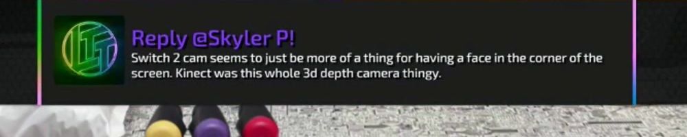 Switch 2 cam seems to just be more of a thing for having a face in the corner of the screen. Kinect was this whole 3d depth camera thingy.