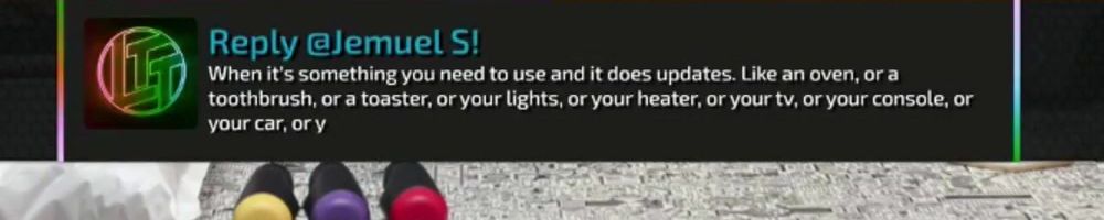 When it's something you need to use and it does updates. Like an oven, or a toothbrush, or a toaster, or your lights, or your heater, or your tv, or your console, or your car, or y