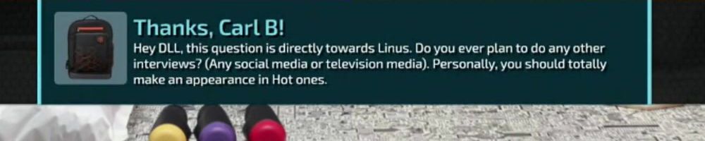 Hey DLL, this question is directly towards Linus. Do you ever plan to do any other interviews? (Any social media or television media). Personally, you should totally make an appearance in Hot ones.